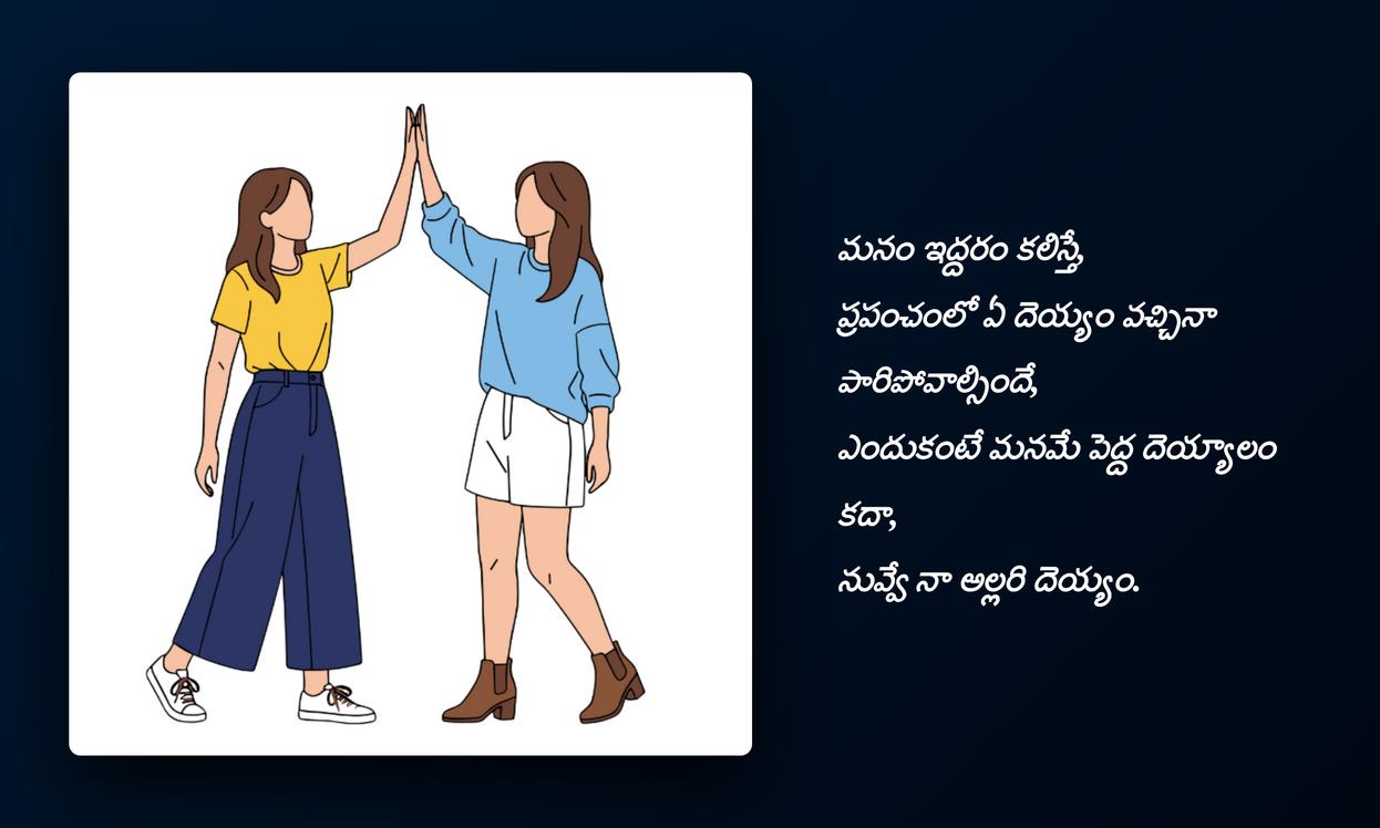 నీ స్నేహం నాలో కొత్త శక్తిని నింపుతుంది,