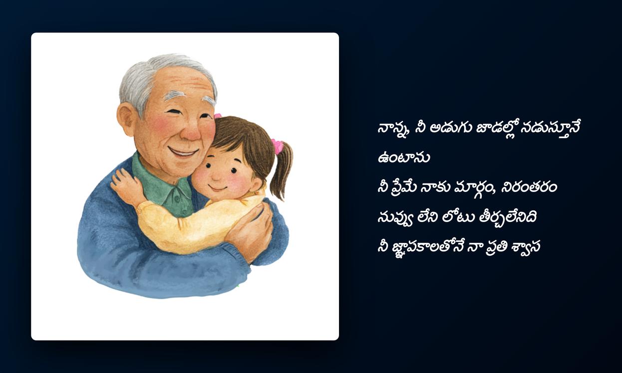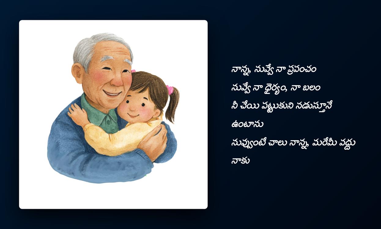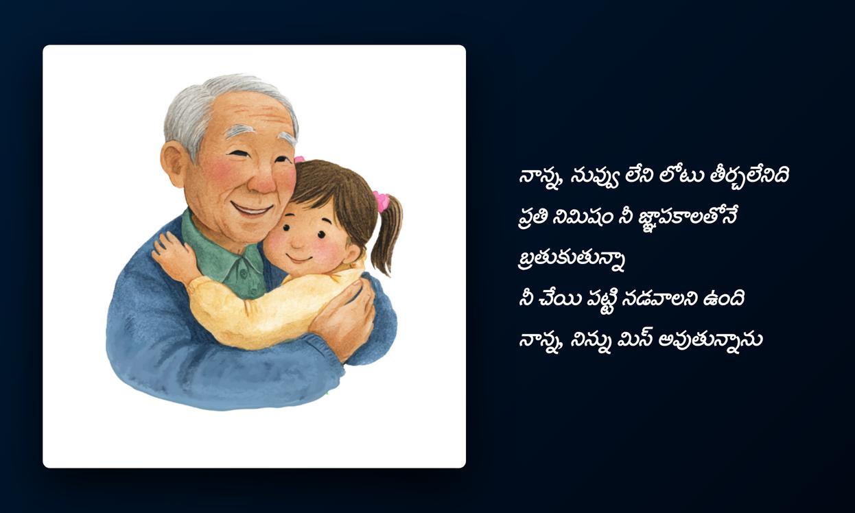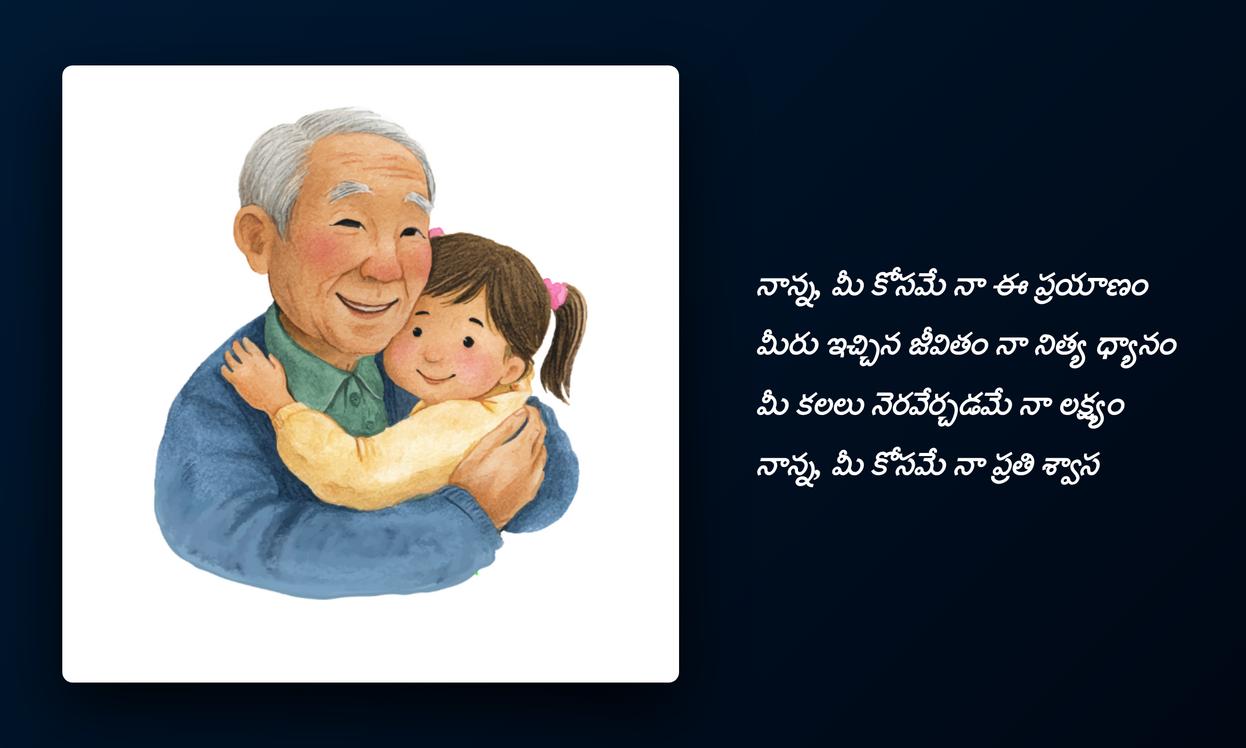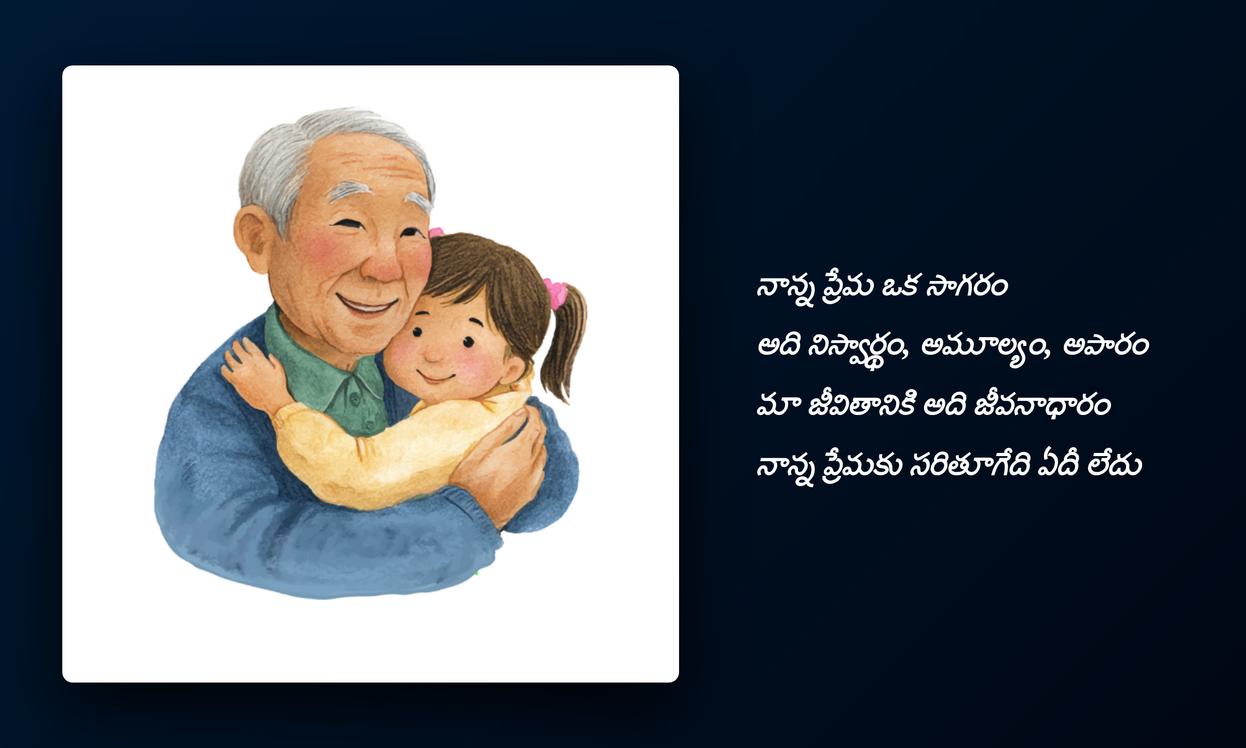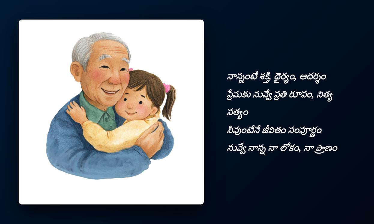nanna quotes in telugu: చివరగా, నాన్న మన జీవితంలో ఎంతటి ప్రాముఖ్యత కలిగి ఉన్నారో ఈ quotes మరోసారి స్పష్టం చేస్తాయి. ఆయన నిస్వార్థ ప్రేమ, నిరంతర మద్దతు మనకు అండగా నిలుస్తాయి. ఈ quotesను మీ social media platformsలో share చేయడం ద్వారా, మీరు మీ నాన్నకు ఇచ్చే గౌరవాన్ని, ఆయనతో మీకున్న అనుబంధాన్ని చాటిచెప్పవచ్చు. ఇది కేవలం ఒక post కాదు, మీ profile identityని మరింత emotionalగా, meaningfulగా మార్చే ఒక సాధనం. మన childhood నుండి వృద్ధాప్యం వరకు నాన్న చేసే త్యాగాలు ఎప్పటికీ మరువలేనివి, వాటిని స్మరించుకోవడం మన బాధ్యత.