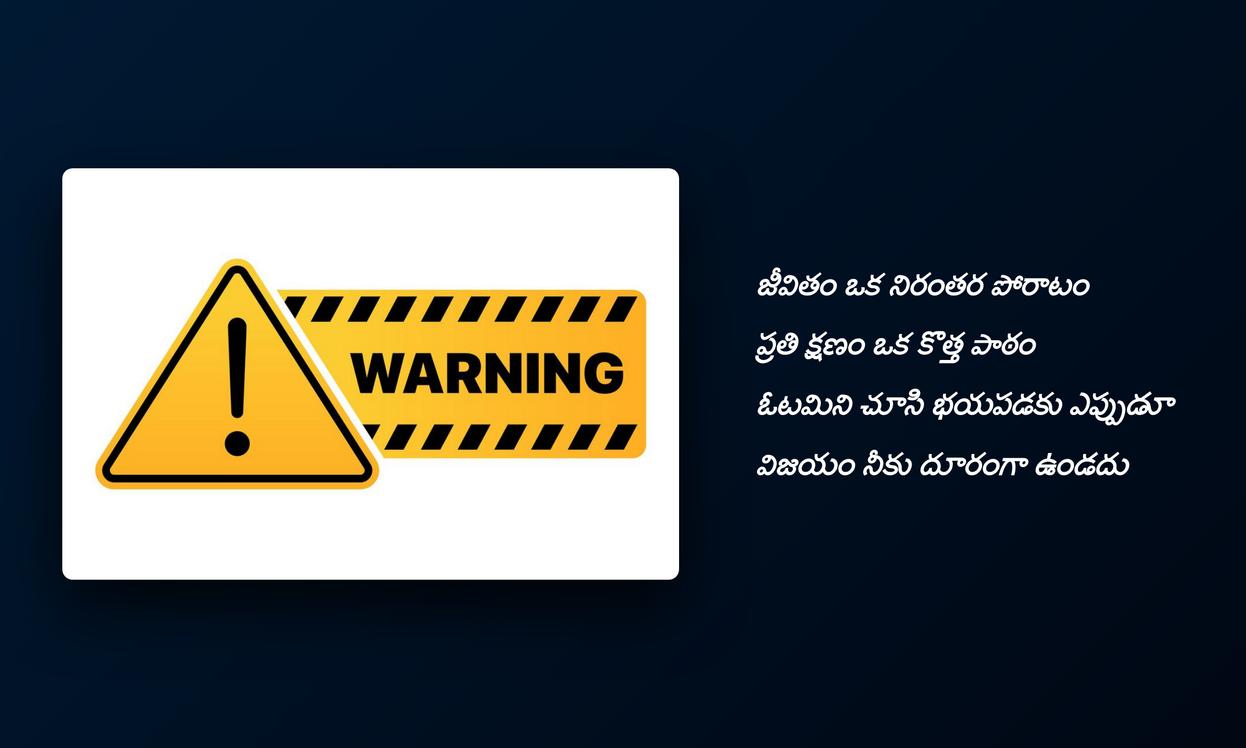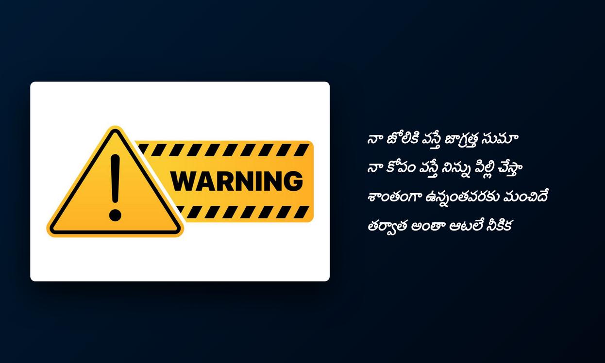 serious warning quotes in telugu: మన జీవితంలో ఎదురయ్యే సవాళ్లను, ప్రమాదాలను లేదా ముఖ్యమైన పాఠాలను సీరియస్ వార్నింగ్ కోట్స్ రూపంలో వ్యక్తం చేయడం ఒక శక్తివంతమైన సాధనం. ఇవి కేవలం మన ప్రొఫైల్ డెకరేషన్ కోసమే కాకుండా, మన భావోద్వేగాలను, మనసుకు కలిగిన గాయాలను, లేదా మనం నేర్చుకున్న కఠిన సత్యాలను పది మందికి తెలియజేయడానికి ఉపయోగపడతాయి. సోషల్ మీడియాలో మన ఐడెంటిటీని ఈ కోట్స్ ద్వారా మరింత బలంగా, అర్థవంతంగా మార్చుకోవచ్చు. ఇవి స్ఫూర్తిని, ఆలోచనను రేకెత్తిస్తాయి.