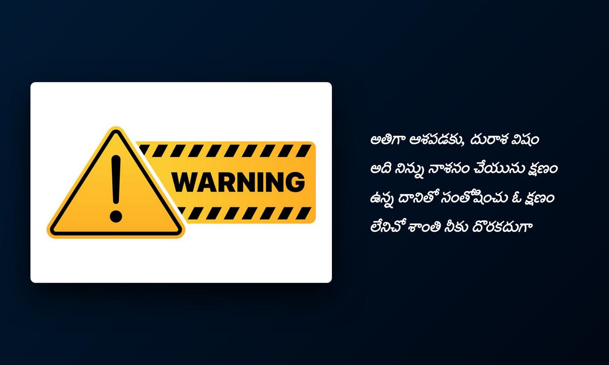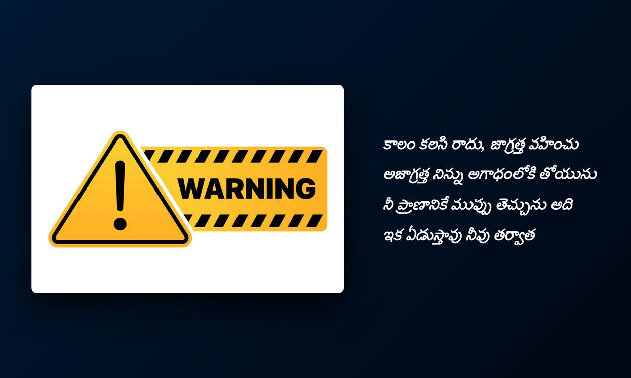 Serious warning quotes in telugu: మన జీవితంలో కొన్నిసార్లు కఠినమైన వాస్తవాలను లేదా ప్రమాదాలను గుర్తించడం చాలా అవసరం. సోషల్ మీడియాలో, ముఖ్యంగా WhatsApp DP లేదా Instagram profileలో, అలాంటి సీరియస్ వార్నింగ్ కోట్స్ పెట్టడం ద్వారా మనం ఒక ముఖ్యమైన సందేశాన్ని పంపవచ్చు. ఈ కోట్స్ కేవలం పదాలు కావు, అవి మన లోతైన భావాలను, ఆందోళనలను, లేదా మనం ఎదుర్కొంటున్న సవాళ్లను వ్యక్తం చేసే ఒక మార్గం. ఇవి ఇతరులకు కూడా ఒక హెచ్చరికగా లేదా స్ఫూర్తిగా నిలబడతాయి.