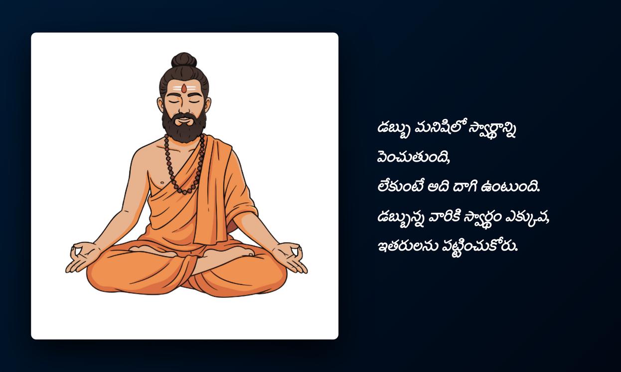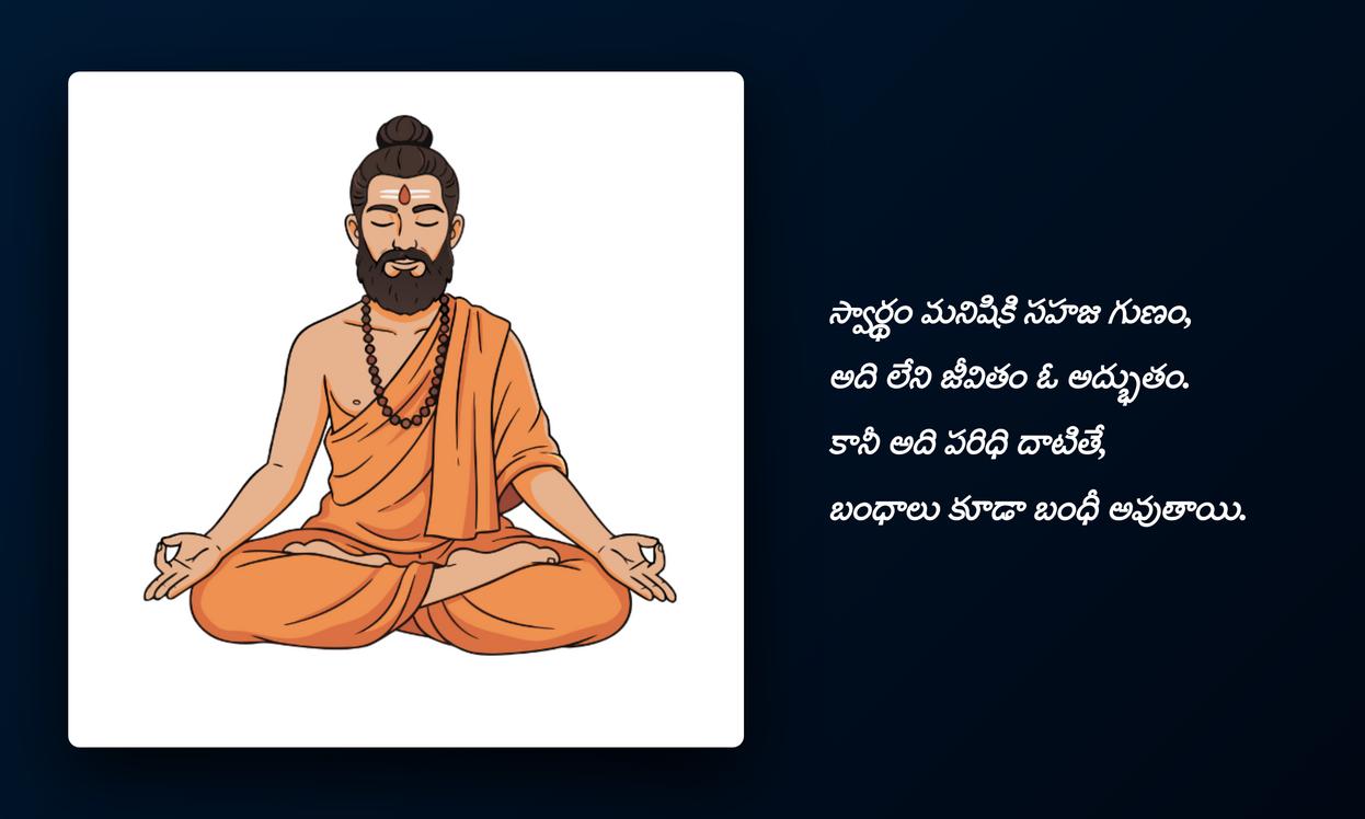 swardham quotes in telugu: స్వార్థం గురించి `quotes` కేవలం సామాన్య పదాలు కావు; అవి మానవ స్వభావంలో ఒక సంక్లిష్ట భాగాన్ని `reflect` చేసే శక్తివంతమైన అద్దాలు. మనలో ప్రతి ఒక్కరిలోనూ స్వార్థపూరిత ఆలోచనలు, చర్యలు అప్పుడప్పుడు కనిపిస్తాయి. వీటిని గుర్తించడం, అర్థం చేసుకోవడం అనేది స్వీయ-అవగాహనకు చాలా ముఖ్యం. `social media`లో ఈ `quotes`ని పంచుకోవడం ద్వారా, మనం ఈ సత్యాన్ని అంగీకరించడమే కాకుండా, ఇతరులు కూడా తమ `feelings`ని గుర్తించి, వాటి గురించి ఆలోచించేలా ప్రేరేపించవచ్చు. ఇది మన `profile identity`ని మరింత నిజాయితీగా చూపుతుంది.